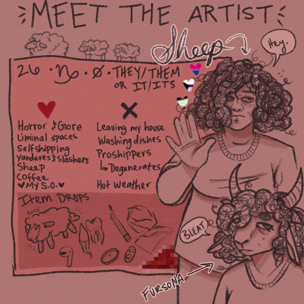 likes horror, slashers, yanderes, liminal spaces, sheep, furry, goth subculture, SCPs, visual novelsdislikes proshippers, pedophiles, racists, other degenerates